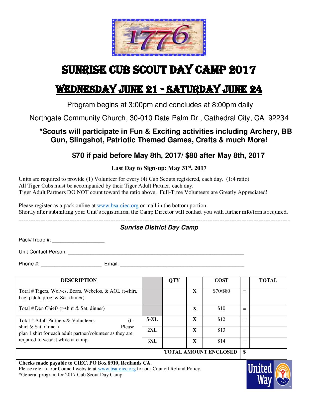 $80.00 per Total # of Tigers Wolves Bears Webelos & AOL